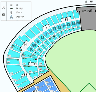 ちなみに、座席はレフト外野指定席 Pブロック2列。