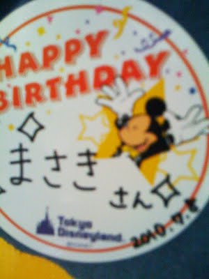 TDLスタッフがくれたHAPPY BIRTHDAYシール。これを貼って歩いていると、たくさんのスタッフに「おめでとう」を言われ、気分も上々!