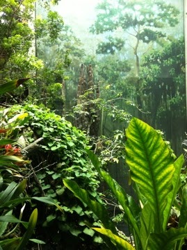 プラネタリウムが終わったら、熱帯雨林エリアに入ろう。その名の通り、蒸し暑い。中では、たくさんの種類の蝶が舞っている。スロープを上っていいくと、最後にエレベータで地下まで下がるルートになっている。